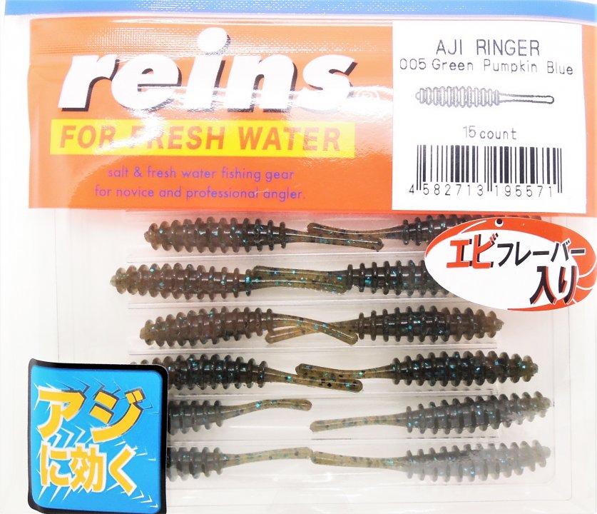 Aji Ringer представляет собой базовую модель серии. Ребристое, похожее по геометрии на твистерное тело заканчивается живым хвостиком с небольшим расширением на конце. Несмотря на то, что приманка пассивная, она создает в воде достаточно много колебаний, благодаря ребристости тела, а также работе хвостика при анимации удилищем. Предпочтительно использовать Aji Ringer на шарнирной оснастке, кроме того он отлично зарекомендовал себя при ловле на поводковые оснастки. Aji Ringer идеально работает при различных типах анимации. Основной объект ловли – окунь, кроме того, приманка отлично подходит для ловли красноперки и другой «бели».
