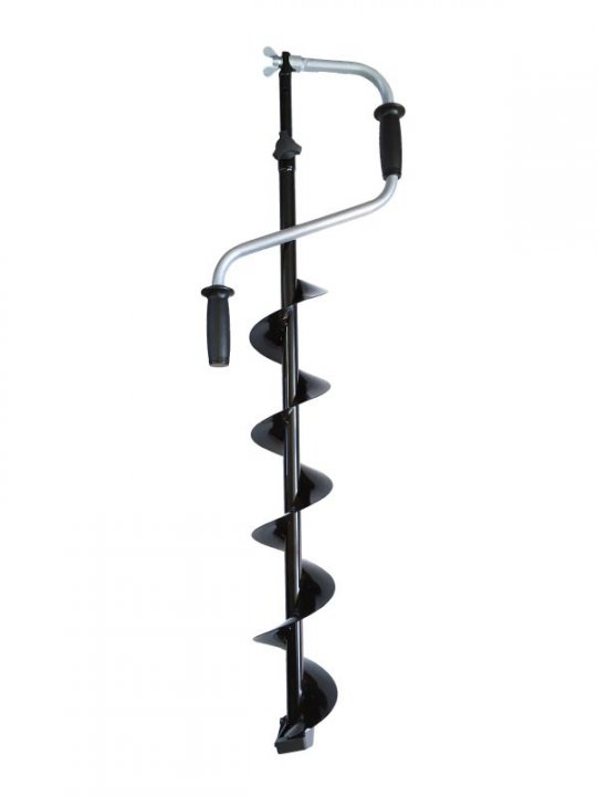 Верхняя рукоятка ледобура смещена относительно оси ледобура на 105 мм, а нижняя на 165 мм. Такое расположение рукояток позволяет вращать ледобур одновременно двумя руками, тем самым увеличивая скорость бурения лунок во льду. Телескопическая штанга-удлинитель позволяет ступенчато увеличивать глубину бурения при необходимости. По сравнению с классическими ледобурами шаг витков шнека увеличен на 10 %, что обеспечивает более быстрое освобождение лунки от шуги и снижает усилие бурения. Ручки выполнены из мягкого пластика, который остается приятным на ощупь даже в сильные морозы.