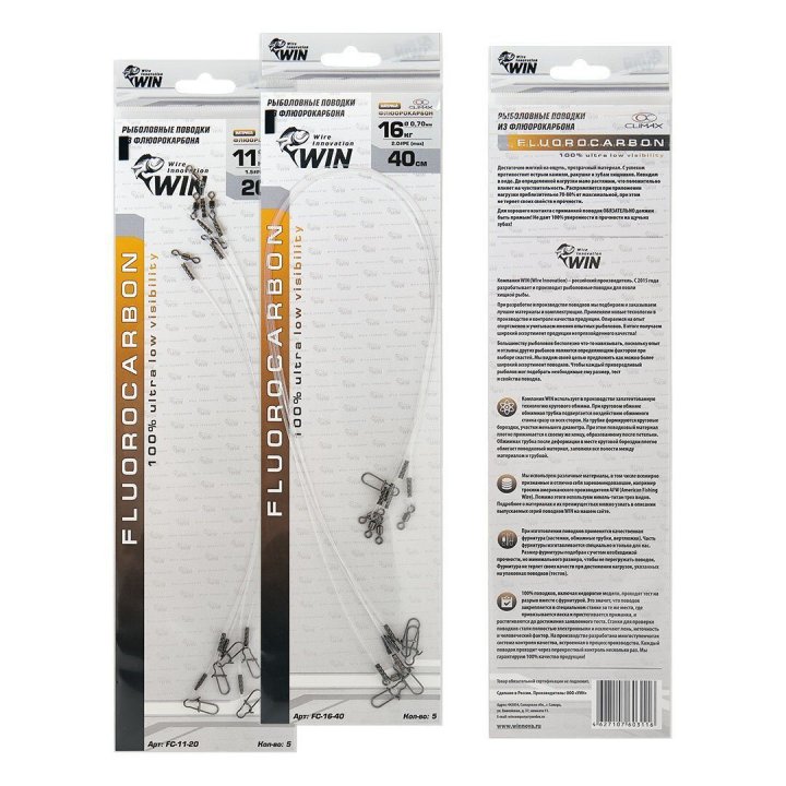 Поводок WIN Fluorocarbon 0,70мм 16кг 30см 5шт.(Россия)