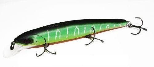 Габаритный суспендер с точеной геометрией тела. При твитчинговой проводке очень чувствителен к любым движениям спиннинга. При резких рывках создает очень сильные вибрации в воде, распространяемые на дальние дистанции и улавливаемые рыбой. При паузах во время проводки выполняет угасающие покачивающие движения из стороны в сторону провоцируя хищника к атаке.