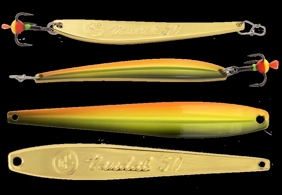 Узкая, прогонистая «вертикалка» с ярко выраженной гранью-килем. Обладает агрессивной «осыпающейся» игрой с незначительным отклонением от центра. Уникальной особенностью ECOPRO Vandal является то, что блесна отлично работает, как с креплением тройника к узкой части блесны, так и наоборот. Блесна универсальна и отлично подходит для ловли сига, щуки, окуня, хариуса и судака.