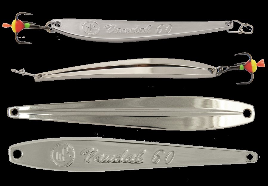 Узкая, прогонистая «вертикалка» с ярко выраженной гранью-килем. Обладает агрессивной «осыпающейся» игрой с незначительным отклонением от центра. Уникальной особенностью ECOPRO Vandal является то, что блесна отлично работает, как с креплением тройника к узкой части блесны, так и наоборот. Блесна универсальна и отлично подходит для ловли сига, щуки, окуня, хариуса и судака.