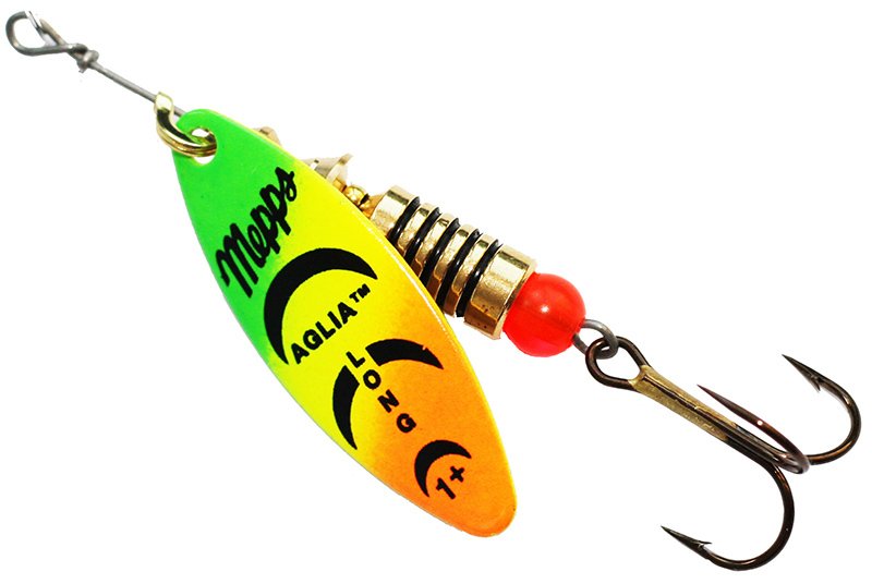 Название приманки, Aglia Long, обусловлено продолговатой формой лепестка и небольшому лобовому сопротивлению. Справедливости ради, следует отметить, что оно несколько изменяется, в зависимости от скорости проводки. Именно эта особенность, то есть очень широкий диапазон допустимой скорости движения, при которой сохраняется безукоризненная работа блесны, и есть главный секрет рекордной уловистости Aglia Long. Благодаря небольшой «упористости» блесны всех размеров пригодны для ловли с проводкой против течения. В то же время и на озере, где часто требуется медленное движение блесны, Aglia Long обеспечит вам превосходную рыбалку. Благодаря своему «ивовому» лепестку и более тяжелому весу, Aglia Long хорошо держит медленное и стабильное вращение на самых сильных течениях. Рекомендуются для плотных потоков, быстрой и глубокой воды, а также для ловли против течения. Хороша и для использования в озерах при охоте на донных хищников, которые не реагируют на быстроходные приманки.