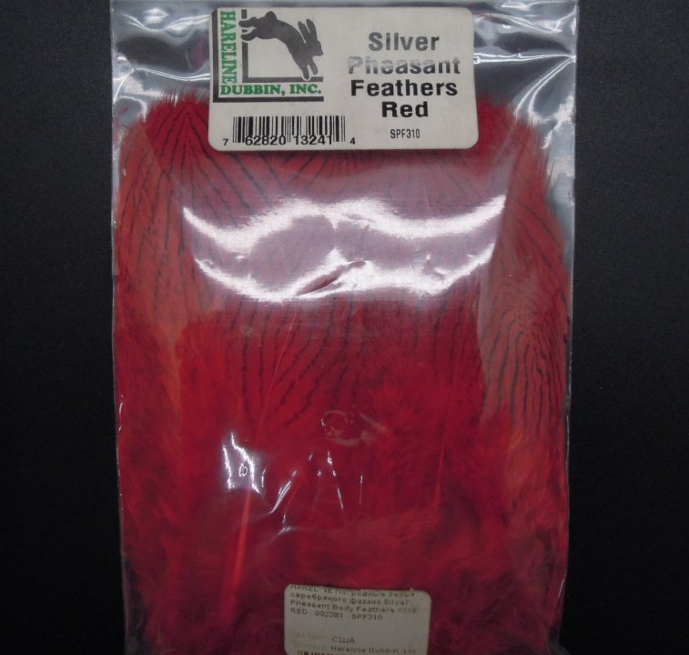 - Перья серебрянного фазана покровные HARELINE цв.red(США)