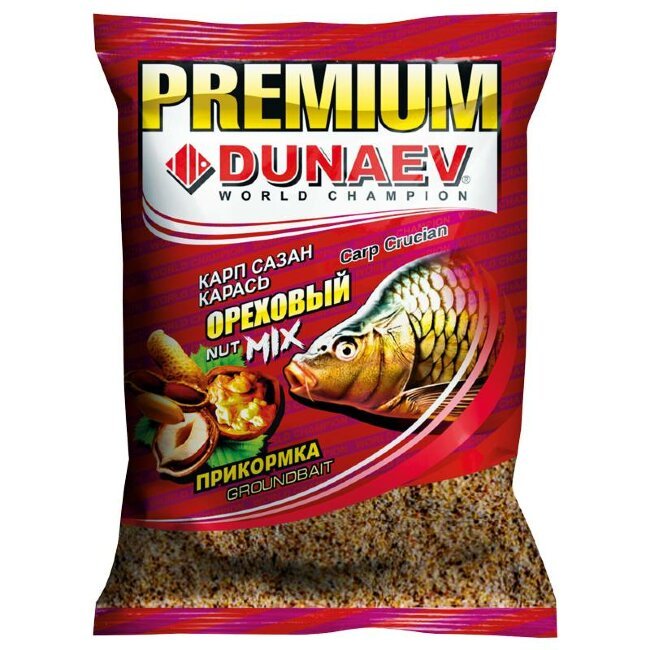 - Прикормка DUNAEV-PREMIUM Карп-Сазан-Карась ореховый микс 1кг(Россия)