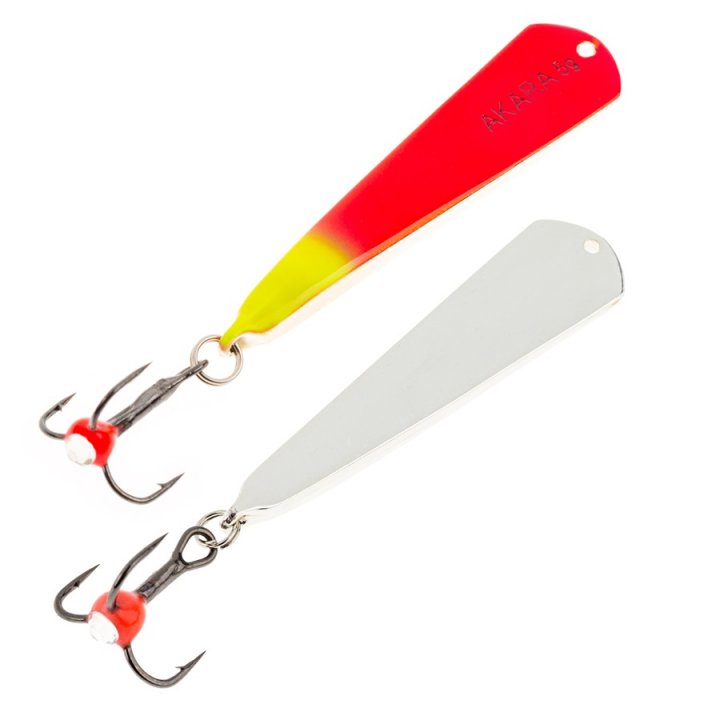 Блесна зимняя Akara Tournament Ice Nota выпускается в двух размерах 35 и 45 мм и в основном рассчитана на ловлю окуня. Отличается гвоздящей игрой и отлично работает по активной рыбе. При широких взмахах имеет отклонение в сторону, что так же привлекает рыбу.