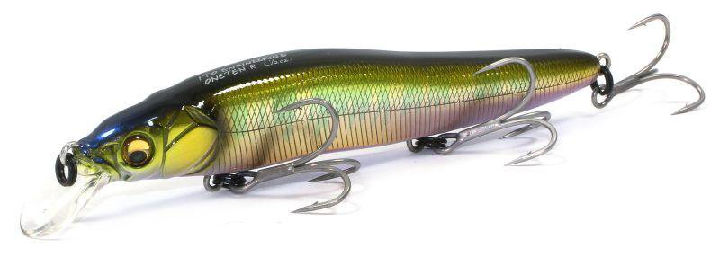 Oneten R - еще одна удивительно реалистичная и уловистая приманка из семейства Oneten от японского бренда Megabass. Oneten R имеет специальную систему, улучшающую полетные характеристики воблера. Она состоит из тяжелого металлического шарика, скользящего по каналу внутри корпуса приманки. При произведении заброса груз смещается в хвост, обеспечивая дальность и точность заброса. С началом проводки шарик занимает исходное положение в головной части воблера. Такое расположение груза стабилизирует игру Oneten R.