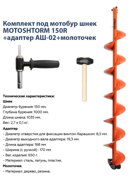 Шнек ТОНАР под шуруповерт Motoshtorm 150R+адаптер АШ02 +молоточек(Барнаул, Россия)