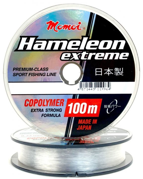 Леска Momoi Hameleon Extreme изготовлена из ко-полимера повышенной прочности. Выдерживает экстремальные нагрузки и продолжительную борьбу с крупной рыбой.