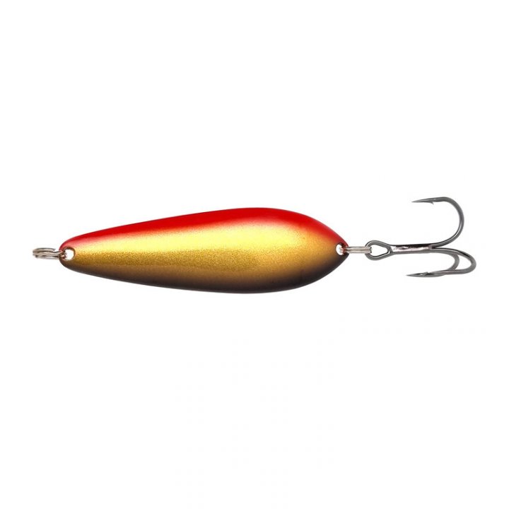 Плавная, «скользящая» игра делает ее очень уловистой при ловле взаброс. В зависимости от водоема и условий ловли совсем не сложно выбрать колебалку для щуки, окуня или форели.