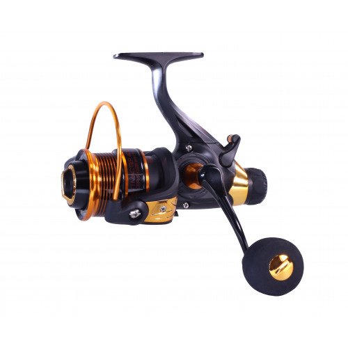 Данная катушка оборудована системой «байтраннер» - «бегущая насадка». Эта функция позволяет леске свободно сходить со шпули при поклевке рыбы, тем самым предотвращая стаскивание всей снасти в воду. Данная система включается рычажком, расположенным на задней части катушки, а усилие, которое нужно приложить для стягивания лески со шпули, регулируется специальной гайкой байтраннера.