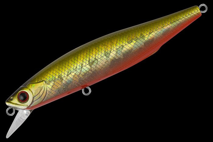 Особенности дизайна: DOMINANT 90SP имеет классическую для воблеров-минноу узкую и вытянутую форму тела. Верхняя часть боковой поверхности воблера выполнена в виде ромбовидных насечек, нижняя - в виде косых насечек, создающих эффект рыбьей чешуи. Головная часть воблера имитирует жаберные крышки рыбки. Вклеенные 3D-глаза завершают реалистичный дизайн приманки.