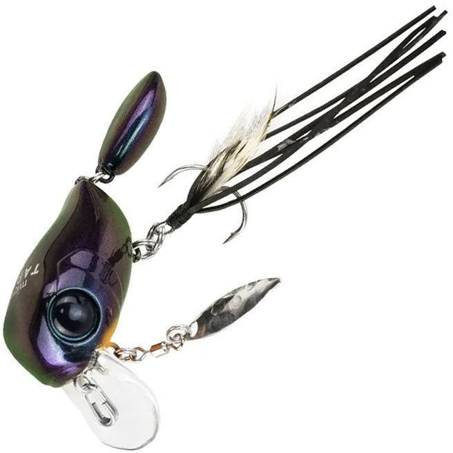 Jackall Micro Tappy – это поверхностный крэнк с максимальным заглублением около 10 см. Благодаря множеству подвижных элементов (тут и оперение на крючке, и вращающаяся блесна на брюшке, и колебалка в хвостовой части), остаётся привлекательным на любой скорости проводки. Удивительно, что при этом сохраняет хорошие полётные качества!